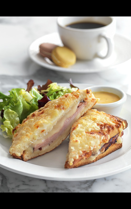 No ordinary grilled ham and cheese sandwich, the French classic consists of crusty, cheese-coated pain de mie filled with melting, béchamel-rich Swiss cheese and Black Forest ham.