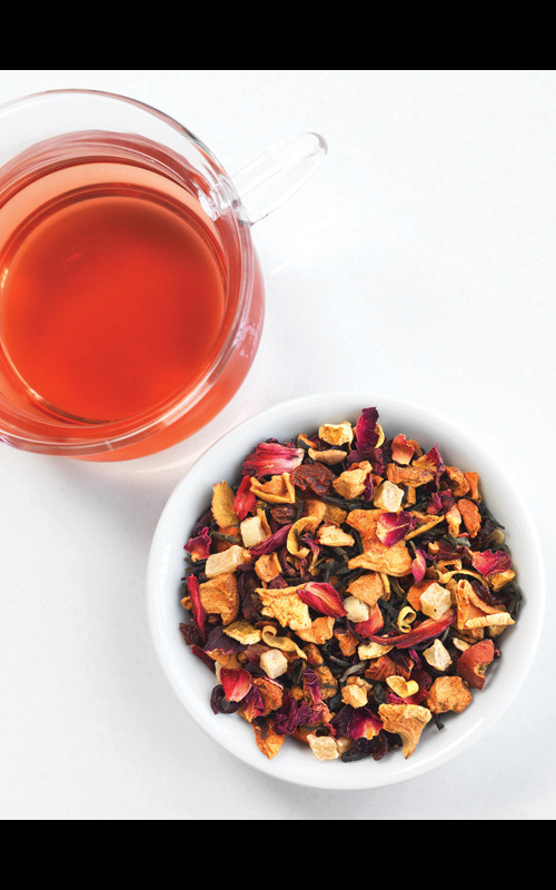A complex aroma releases hints of citrus and berries as the popular tea steeps. The blend of Youthberry White and Wild Orange Blossom herbal teas is sweetened with German rock sugar, complementing subtle notes of mango and red currant.