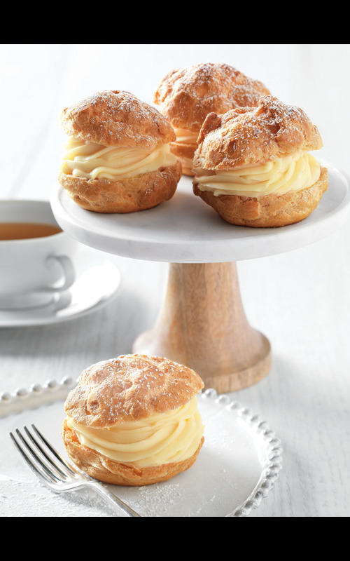 Ethereal light pâte à choux is filled with vanilla pastry cream so rich it resembles custard. The golden crown is finished with a liberal dusting of powdered sugar. The ultimate afternoon treat with coffee or tea.