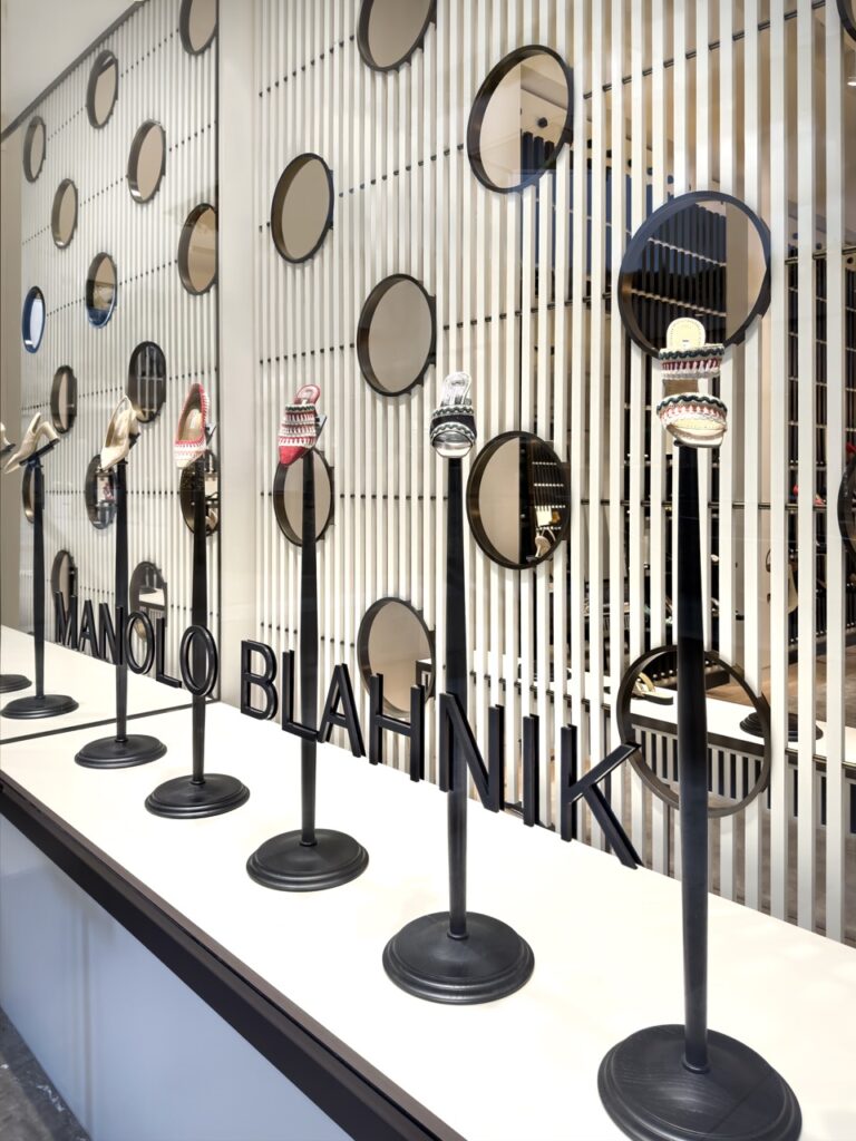 She sees the design not just as retail, but as storytelling, allowing the customer to discover the craftsmanship of each shoe. “By creating these dynamic spaces I feel that we’re doing the best service to Manolo’s babies.”
