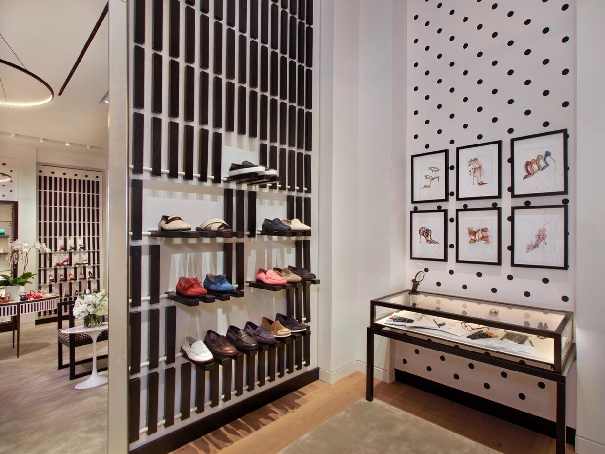 The store itself reflects Manolo Blahnik’s devotion to design. “Manolo has always been drawn to Josef Hoffmann, and it has elements of his sensibility,” the executive said, referencing the Austrian modernist architect whose clean lines and geometric motifs have long inspired her uncle.