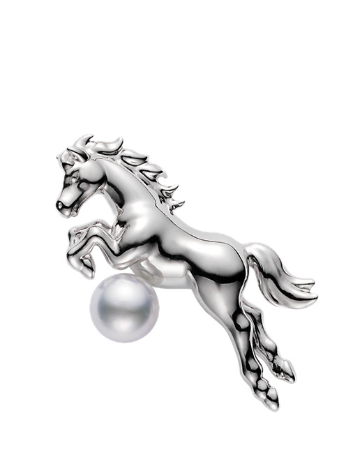 Silver Horse Brooch with an Akoya Pearl